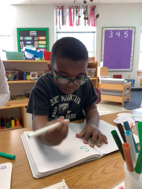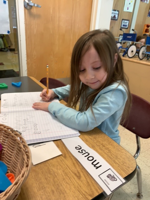 We have also added engaging materials to our Writing Center. Each child has received a new journal where they are able to practice their growing writing skills. We have seen several children engaged during choice time as they have brought out their writing journals and practiced writing words from our Word Wall, which is also located in the Writing Center. Also, the children have spent time using wikki Stix. Wikki stix are designed to bend and form into various shapes. We have encouraged the children to use these to create the letters within their names. This is also a great way to assess their blossoming letter knowledge.