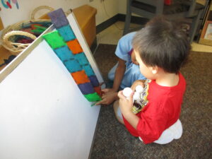 Some of our activities include, growing a unicorn, learning about measuring and patience. Painting on saran wrap was a new form of painting. We also made a rainbow using skittles! The children used magna-tiles to create a ball run. Actually the magna-tiles have also been a stable, a tower and a stage! They are by far the most used of all our material! The children have been using bikes and scooters each day outside as well as taking turns on the tire swing. These children are so curious about all animals, what they eat, where they live and their size. We are grateful for the technology in the classroom to cross check facts!