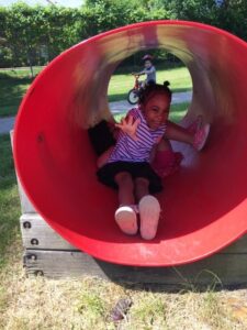 Gross motor development had us heading to the Gabel Annex playground each day which helped us to further our social distancing from other classrooms. We rode bikes and scooters and used the climber and tunnels. Obstacle courses were set up by both teachers and the children and we used a stopwatch to see how fast we were in completing the courses.