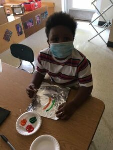 Welcome Back! Although June was a short month for us, we were very busy and productive! We have become very good at wearing our masks and social distancing within our classroom environment. Keeping each other safe and healthy is very important to us. We are getting very comfortable in our new summer classroom and we are learning about each other and making new friends. We have completed “All About Me” posters that display our photo, name, age, family members, favorite pet, food, color, and ice cream. The posters are displayed in the hallway for everyone to see.