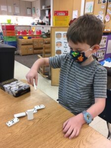 Science activities had us mixing baking soda and vinegar to create a chemical reaction. We did a fun STEM activity to create and launch straw rockets into the air. We stocked our manipulative shelves with a variety of math games which included dominoes, checkers, and matching card games.