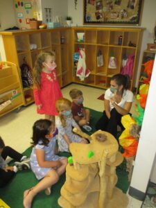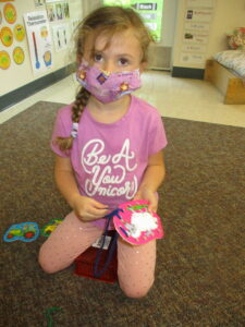 We are so glad to be back at the CDFC for the fall semester! We have been getting acquainted with one another and our routine in the classroom. We are becoming familiar with the expectations of the classroom and have been building relationships within our Pre-3 family. We have established our group time routine and implemented the calendar as part of our day, we came up with some basic classroom rules, and have adapted well to all the new changes this semester involving COVID-19 which includes proper mask wearing, hand washing, sensory play, and social distancing. We have some awesome students workers in our classroom this semester. Mary, Megan, and Kristin are all returning students and Christine is new to our class, and has fit in so well!  We all have been working hard to provide a positive/safe and welcoming environment.