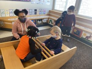 Books have been a huge part of our classroom! A lot of the children will come on in and grab a book to read first thing as they get settled into the room. The children have been interacting with social stories that include pictures of themselves and their classmates. Some of the popular ones include “Hickety, Pickety Bumblebee, Won’t You Say Your Name for Me?” “Look and See,” “(insert child’s name) is Here Today,” and more. One of the things we are going to work on to add to our collection is an “All About Me” book. These sheets were sent home with you recently, please make sure to bring them back to Nadine or Kat as soon as possible so we can compile this book for our room.
