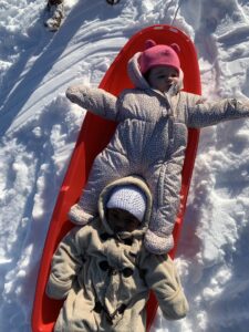 In the mornings we walk over to Gabel’s infant/toddler playground, while in the afternoon, we use the main CDFC infant/toddler playground. The children have been taken on sled rides, they’ve explored the snow and ice through their sense of touch and taste, and have been working on climbing up and down the climber to use the slide, with teacher guidance.