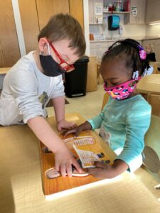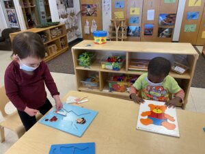 We have been spending time working with puzzles of varying difficulty in the classroom. Jigsaw puzzles provide the perfect opportunity to scaffold with children. Scaffolding involves “bridging the gap” between what children can do independently and what they can do with assistance from peers or adults. For example, they might be frustrated that they cannot complete a puzzle. At the table, they get a little help from a friend and together they complete the task. The next day, that same child can complete that same puzzle without assistance. This child may now feel confident enough to attempt an even more challenging puzzle the next time around.