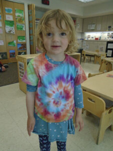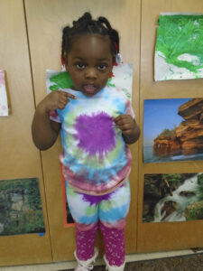 Daily Happiness for Kids (Bucket Filling Books) by Carol McCloud for Work together Wednesday. We tie dyed t-shirts for Artsy Thursday and created art with markers, water and coffee filters to create a tie dye print. We also created art with red and black paint and fly swatters for NIU Friday. We also had some guest readers during the week: Gibson Cima, Jasmine Young, Lance Dolan, and Adam Michels. The children displayed a range of emotions as they saw their family member reading to us from a screen. Thank you to all who read to us!