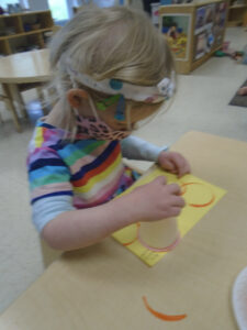 During our days in the classroom, we have had several activities that work all areas of development. Some art activities we did include stickers, drawing with markers, oil