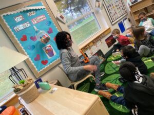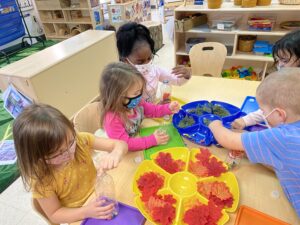 This month we have noticed the children have been interested in getting more involved in our action songs and fingerplays. We spend time singing and moving before lunch daily. The children sometimes request the old favorites, but we also try to include new songs occasionally. Music and movement provides many life-long benefits to young children which includes creative expression, strengthening motor skills and building language and literacy skills. Music and movement also helps build children’s social emotional skills as engaging in music and movement as a group helps foster that sense of belonging within our classroom community. We have included the links to a few of our favorite songs. Please let us know if you share them at home with your child.