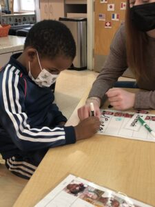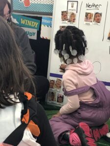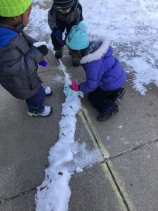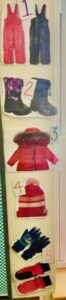 We encouraged the children to think about what types of clothing are needed to wear outside to stay safe in the cold weather and why we need protection. We also considered this an opportunity to present a sequence on how to get dressed successfully for outdoor weather. Inside the classroom, we have various visuals that list step by step the order of clothing. We use this to reference while getting ready. First, we start with snow pants, then boots, followed by coat, hats, gloves or mittens. Please encourage your child to follow this sequence at home to promote self confidence in taking care of ones needs.