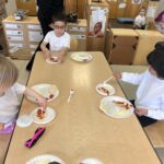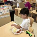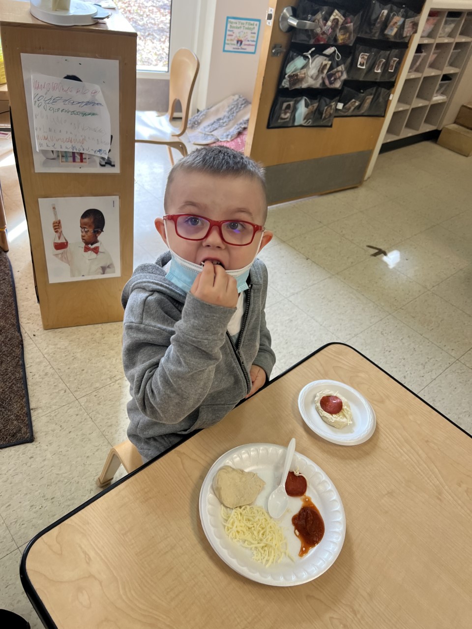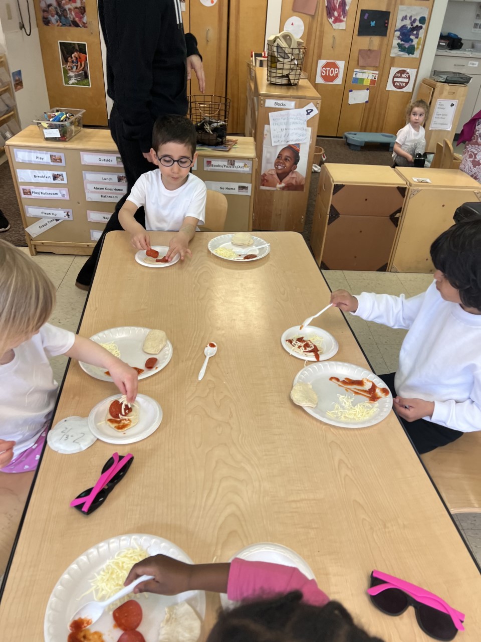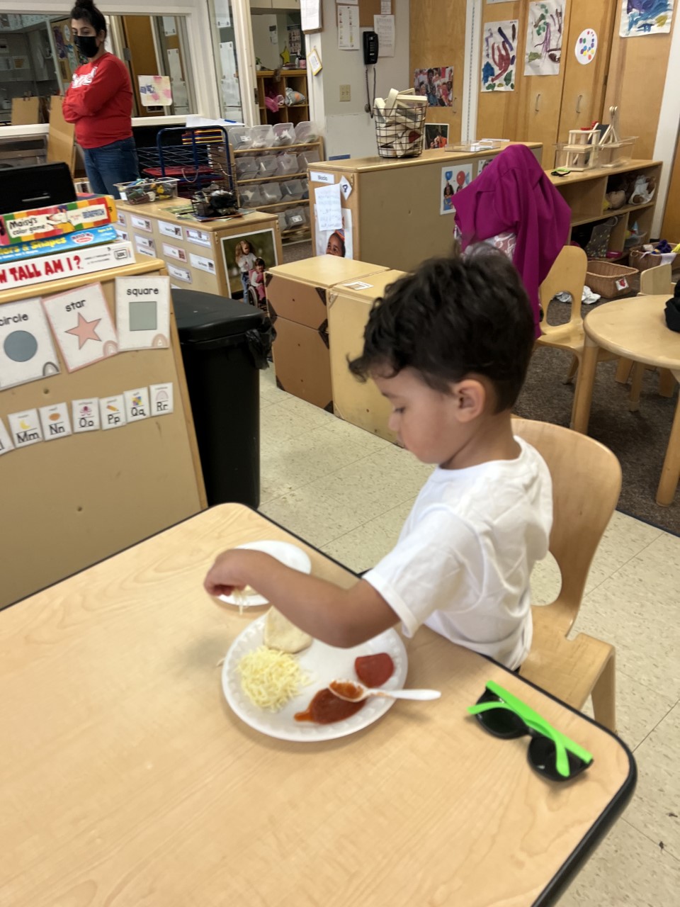 Our Week of The Young Child was filled with lots of activities! The children have been interested in cooking activities in our room, so for Tasty Tuesday, we made waffle pizzas and smoothies. The waffle pizzas were something new for the kids. They were in charge of assembling the pizza and they were cooked by the teachers for afternoon snack. At first the kids were confused because it did not look like the typical pizza they eat. However, once they took their first bite they were surprised that it still tasted like a pizza!