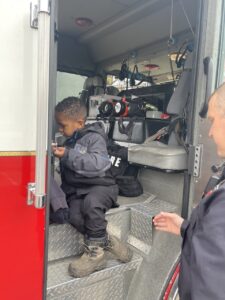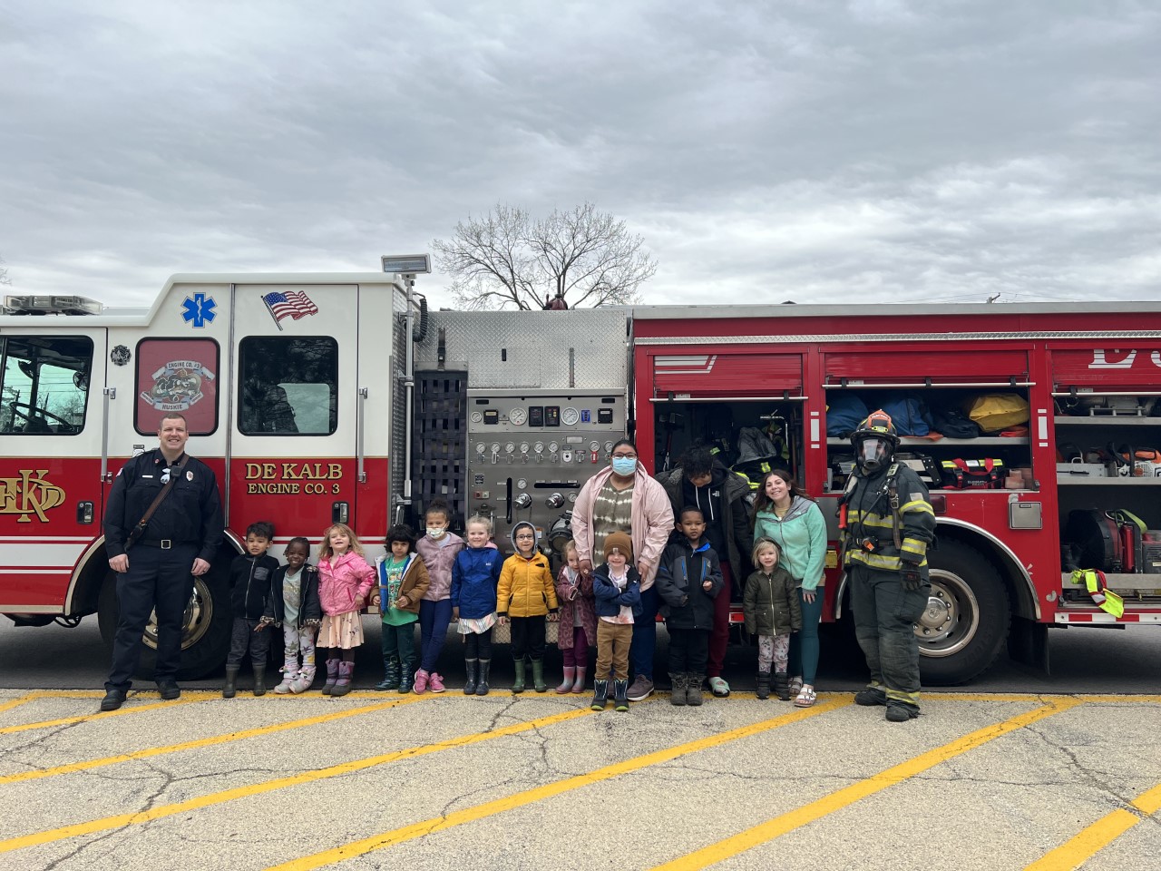 To end the month, our intern Nick, called the DeKalb Fire Department and asked if they could come and talk to the kids about what they do. The firefighters came and talked to the children about what they do on a day to day basis. They then showed them what they need to put on when they have to go put out a fire or go into a house that is on fire. The firefighters then allowed the children to go inside their truck and take a picture. We are so thankful that they took the time to come out and talk to us!
