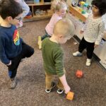 We have had our ups and downs when it comes to the weather. Luckily we have been able to provide our kids with a variety of movement activities in the room for those rainy days. One of the things the kids like, is an activity called Crash Mat. This is when a teacher brings in a big mad and holds it up using their body. The kids are then called one by one, they run towards the mat and hit it with all their force. Another game that was introduced to them this month were our action dice. One dice has different animal movements, while the other dice has time frames.