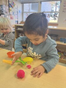 Whenever we have a minute to reflect on the classroom, Kat and I find ourselves talking about the growth in language we have observed in the children. When we typically think of language development, we typically think of babbling and saying words. In reality- language development encompasses so much more. From all things that are considered “receptive language” to the more obvious “expressive language.”  One and 2-word commands become 3–4-word simple phrases to more complex sentences- the 2-3yr old range is full of growth in language.  Disclaimer- we are also aware that some of our children come from multilingual homes. As a bilingual person myself, this topic is near and dear to my heart so I have also included some information on it which explains multilingualism better than I ever can.