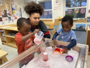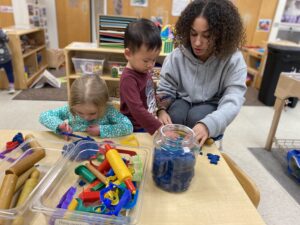 Whenever we have a minute to reflect on the classroom, Kat and I find ourselves talking about the growth in language we have observed in the children. When we typically think of language development, we typically think of babbling and saying words. In reality- language development encompasses so much more. From all things that are considered “receptive language” to the more obvious “expressive language.”  One and 2-word commands become 3–4-word simple phrases to more complex sentences- the 2-3yr old range is full of growth in language.  Disclaimer- we are also aware that some of our children come from multilingual homes. As a bilingual person myself, this topic is near and dear to my heart so I have also included some information on it which explains multilingualism better than I ever can.